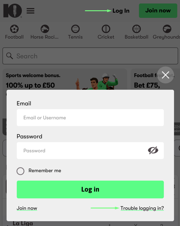 - Click Login (top-right) and select Trouble logging in? in the pop-up.