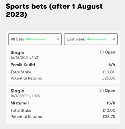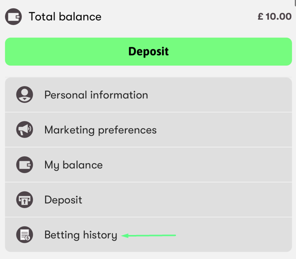 3. Click 'Betting history'