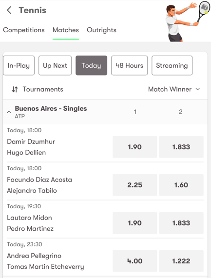 - Click 'Tennis'
